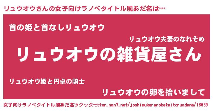 | 男性向けラノベタイトル風あだ名 | 『やはりリュウオウの青春ラブコメはまちがっている 』 |