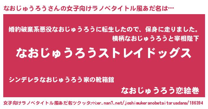 | 意味不明あだ名 | 『自称なおじゅうろう』 |