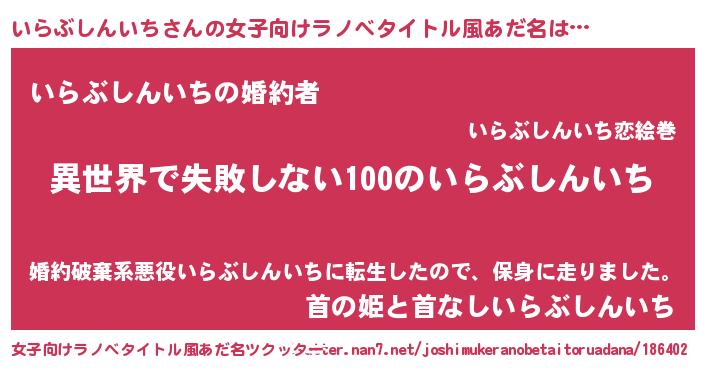 | 男性向けラノベタイトル風あだ名 | 『いらぶしんいちという概念が存在しない退屈な世界 』 |