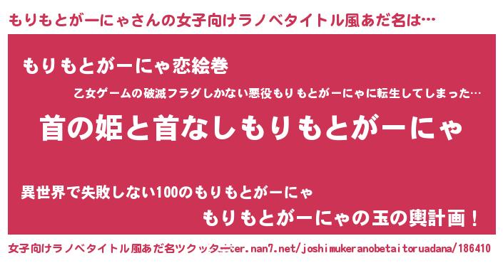 | 男性向けラノベタイトル風あだ名 | 『はたらくもりもとがーにゃさま!』 |
