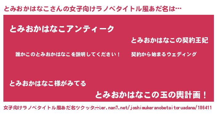 | 胡散臭い通販商品みたいなあだ名 | 『億万長者になれる水晶球…その名も「とみおかはなこ」』 |