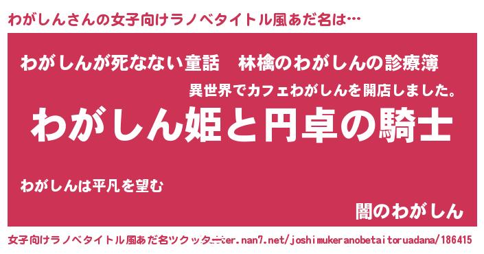 | ファンタジー風あだ名 | 『ワガフェル』『ヴァルワガーナ』 |