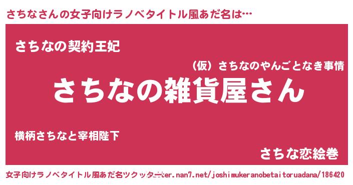 | 男性向けラノベタイトル風あだ名 | 『やはりさちなの青春ラブコメはまちがっている 』 |