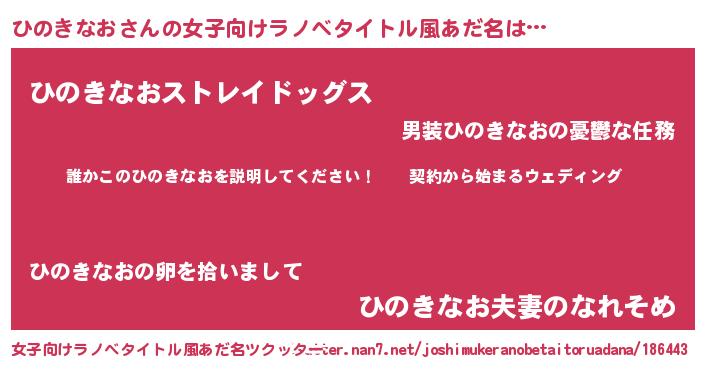 | 男性向けラノベタイトル風あだ名 | 『ヒノキナオアートオンライン』 |