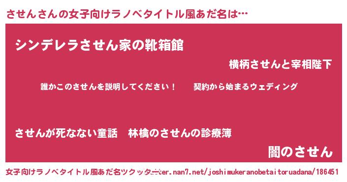 | 男性向けラノベタイトル風あだ名 | 『サセンアートオンライン』 |