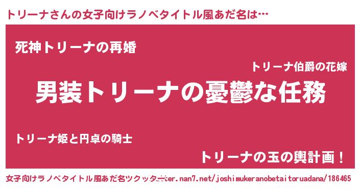 | 男性向けラノベタイトル風あだ名 | 『うちのトリーナが世界を掌握している!』 |