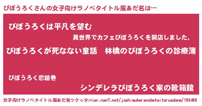 | 胡散臭い通販商品みたいなあだ名 | 『ハリウッド女優が絶賛した100年もののヴィンテージワイン…その名も「びぼうろく」』 |