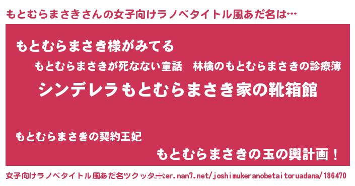 | ヘコむあだ名 | 『もとっぺ』『もとむらまさき(笑)』 |