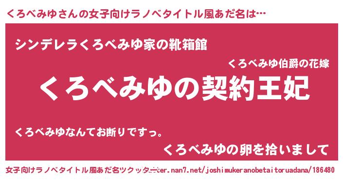 | 胡散臭い通販商品みたいなあだ名 | 『来世でも幸せになれる水素水…その名も「くろべみゆ」』 |