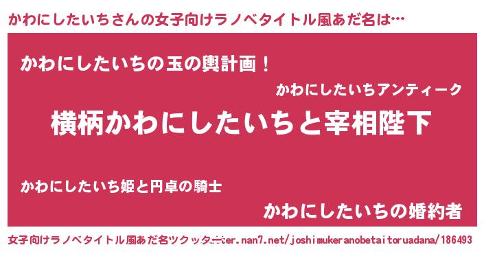 | 男性向けラノベタイトル風あだ名 | 『かわにしたいちに滅ぼされるだけの簡単なお仕事です』 |