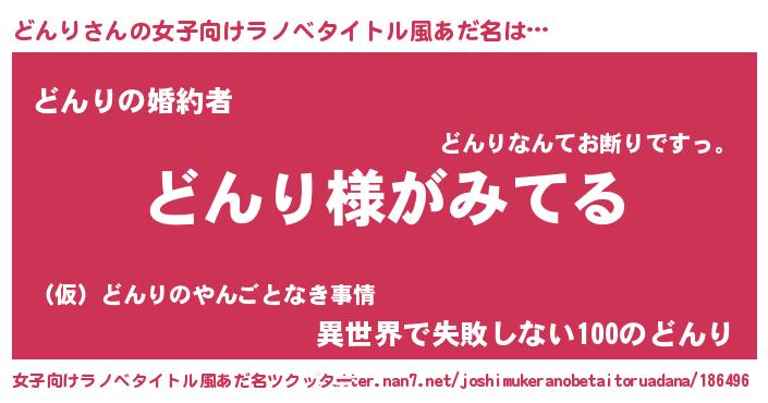 | 男性向けラノベタイトル風あだ名 | 『どんりの嫁は女の子じゃないと思った?』 |
