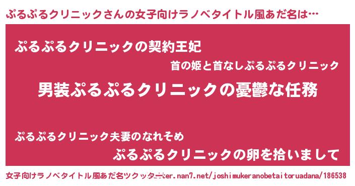 | 男性向けラノベタイトル風あだ名 | 『うちのぷるぷるクリニックが世界を掌握している!』 |