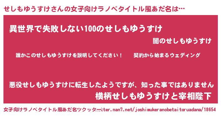 | 男性向けラノベタイトル風あだ名 | 『セシモユウスケアートオンライン』 |