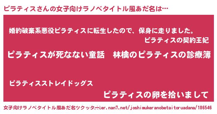 | 胡散臭い通販商品みたいなあだ名 | 『ハリウッド女優が絶賛した100年もののヴィンテージワイン…その名も「ピラティス」』 |