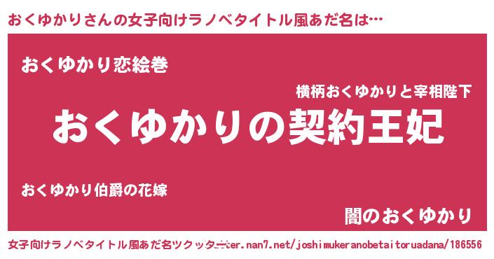 | 男性向けラノベタイトル風あだ名 | 『おくゆかりという概念が存在しない退屈な世界 』 |