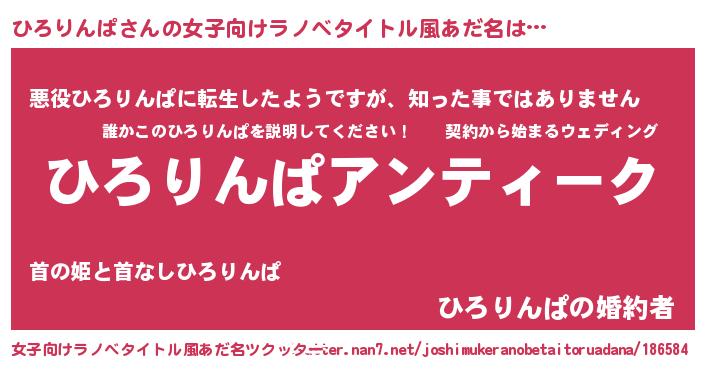 | 男性向けラノベタイトル風あだ名 | 『魔法科高校のひろりんぱ』 |