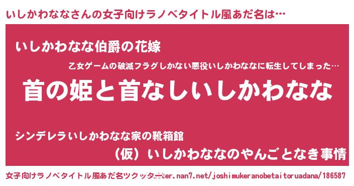 | ファンタジー風あだ名 | 『エターナルイシカワナナー』 |