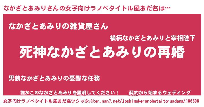 | 男性向けラノベタイトル風あだ名 | 『ノーゲーム・ノーナカザトアミリ』 |
