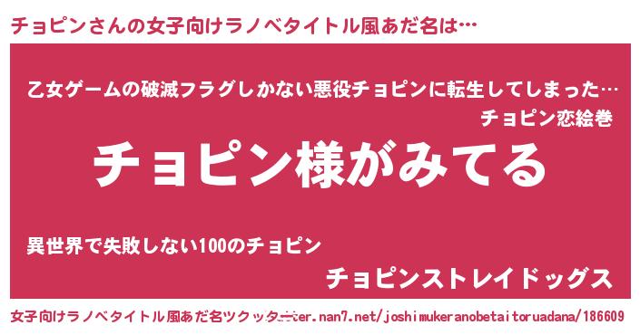 | 意味不明あだ名 | 『とにかく怪しいチョピン』 |