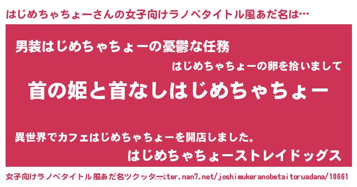 | 男性向けラノベタイトル風あだ名 | 『はたらくはじめちゃちょーさま!』 |