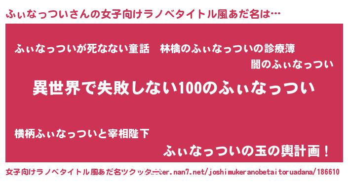 | 男性向けラノベタイトル風あだ名 | 『ふぃなっついという概念が存在しない退屈な世界 』 |