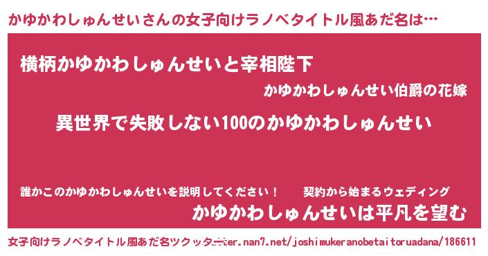 | 男性向けラノベタイトル風あだ名 | 『かゆかわしゅんせいという概念が存在しない退屈な世界 』 |
