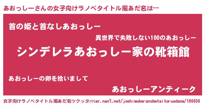| 男性向けラノベタイトル風あだ名 | 『冴えないあおっしーの育てかた』 |