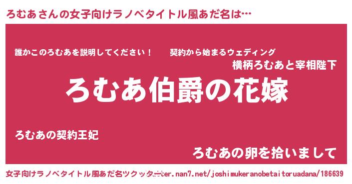 | 胡散臭い通販商品みたいなあだ名 | 『世界が平和になる高級そうな絵画…その名も「ろむあ」』 |