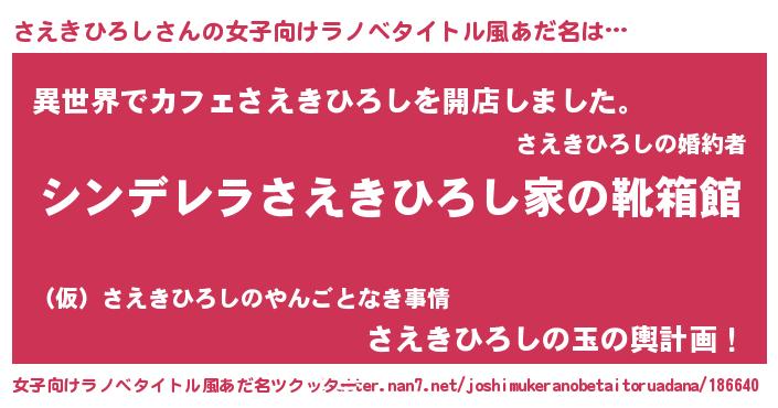 | ヒーロー風カッコイイあだ名 | 『ネオサエキヒロシ』『幻影騎士サエ』 |