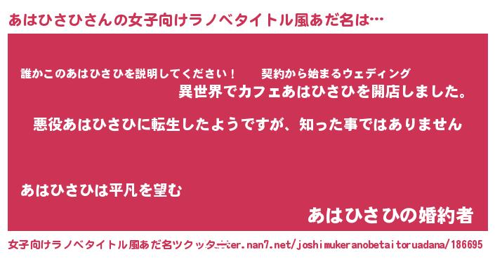 | 男性向けラノベタイトル風あだ名 | 『この素晴らしい世界にあはひさひを!』 |