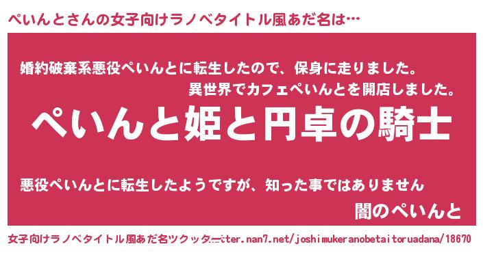 男性向けラノベタイトル風あだ名 | 『ぺいんとの憂鬱』 |