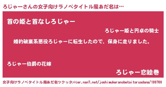 | 自動車の名前っぽいあだ名 | 『ロールスジイス』『ランロジギーニ』 |
