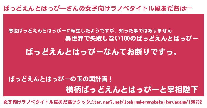 | 意味不明あだ名 | 『自称ばっどえんとはっぴー』 |