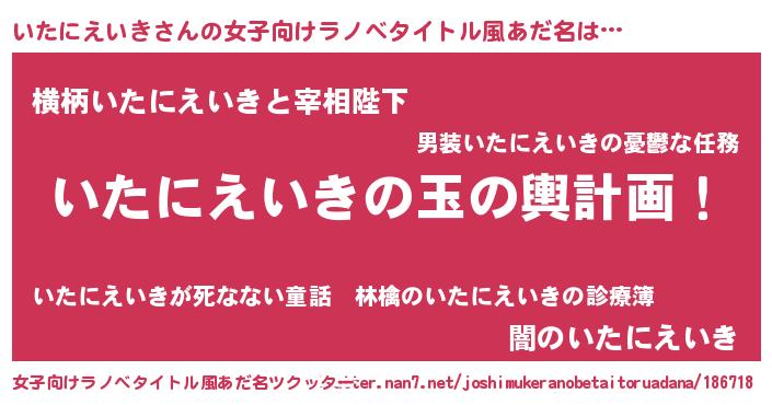 | ヘコむあだ名 | 『いたにえいき(笑)』『いたふぇ~』 |