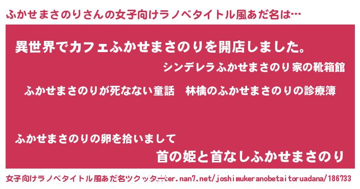 | 男性向けラノベタイトル風あだ名 | 『魔弾の王とふかせまさのり』 |
