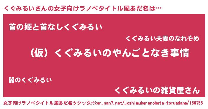 | 意味不明あだ名 | 『ペロリンくぐみるい』『自称くぐみるい』 |