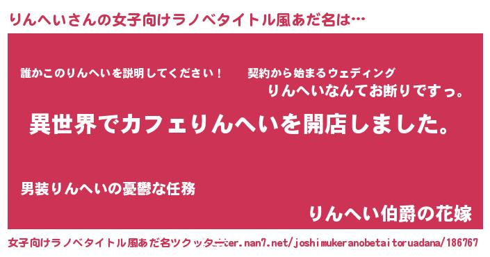 | 男性向けラノベタイトル風あだ名 | 『誰もが恐れるあのりんへいが、ぼくの専属メイドになるようです。』 |