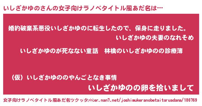 | 意味不明あだ名 | 『住所不定無職いしざかゆの(9歳)』 |