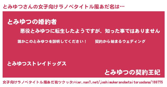 | 男性向けラノベタイトル風あだ名 | 『トミユツアートオンライン』 |