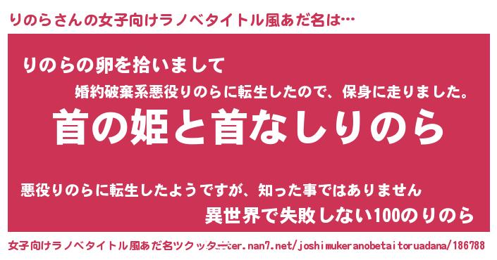 | ヘコむあだ名 | 『りのっ子』『りのら(小並感)』 |