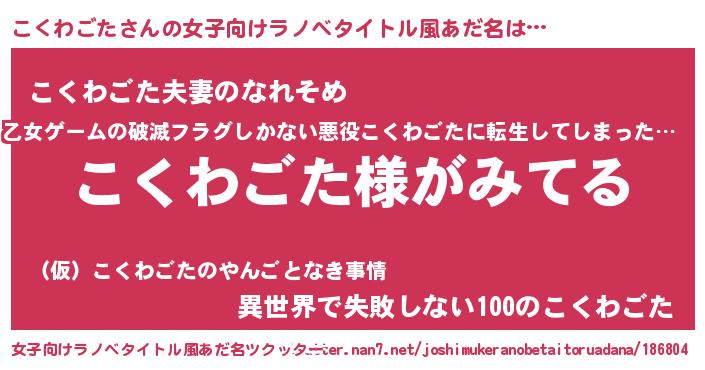 | 意味不明あだ名 | 『とにかく怪しいこくわごた』 |