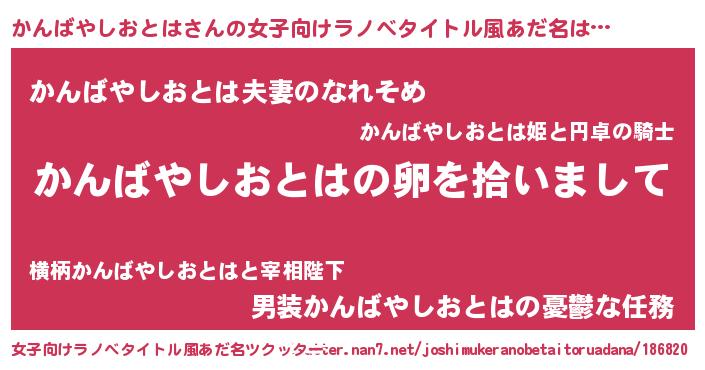 | 胡散臭い通販商品みたいなあだ名 | 『伝統あるサプリメント…その名も「かんばやしおとは」』 |