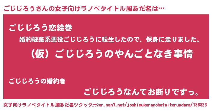 | 胡散臭い通販商品みたいなあだ名 | 『必ず成功するブレスレット…その名も「ごじじろう」』 |