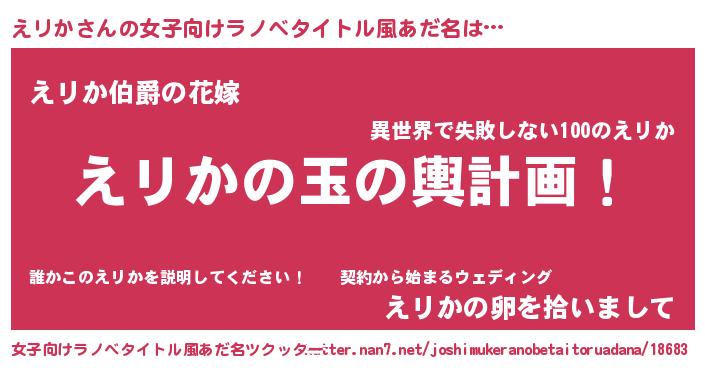 | 男性向けラノベタイトル風あだ名 | 『転生したらえリかだった件』 |