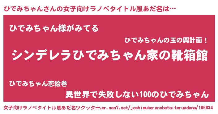 | 胡散臭い通販商品みたいなあだ名 | 『伝統あるサプリメント…その名も「ひでみちゃん」』 |