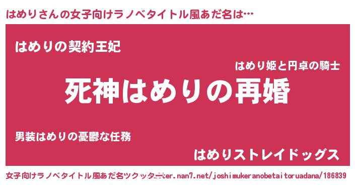 | 男性向けラノベタイトル風あだ名 | 『ノーゲーム・ノーハメリ』 |