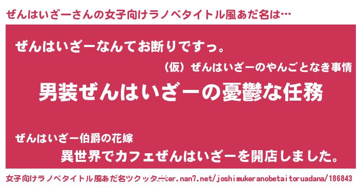 | 男性向けラノベタイトル風あだ名 | 『うちのぜんはいざーが世界を掌握している!』 |