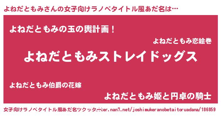 | 男性向けラノベタイトル風あだ名 | 『Re:よねだともみから始める異世界生活』 |