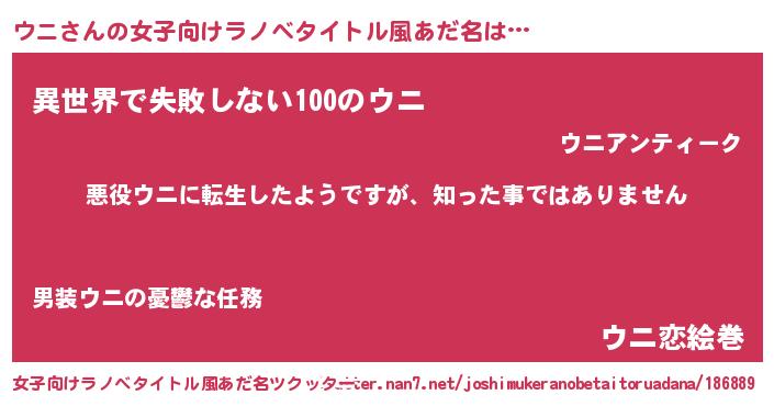 | ヘコむあだ名 | 『ウニ(震え声)』『ウニにー』『豆乳』 |