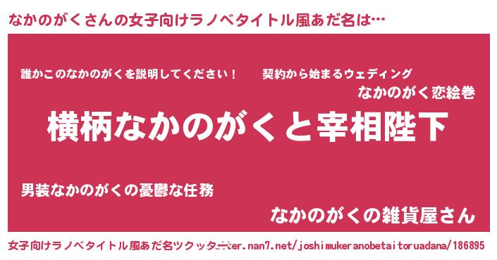 | 男性向けラノベタイトル風あだ名 | 『なかのがくに滅ぼされるだけの簡単なお仕事です』 |